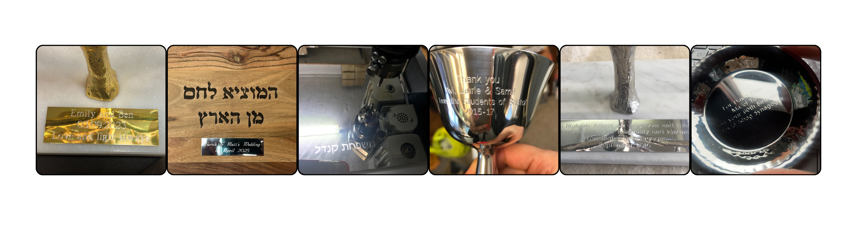 Each item costs £45 to engrave. Hebrew text will cost £60.