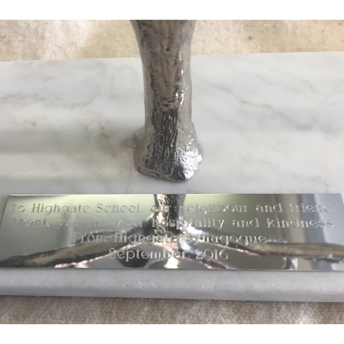A gift they can treasure forever, our engraving service allows you to customise your gifts. Choose from a number of elegant fonts, then engrave your kiddush cup, plate, chanukiah or challah knife with a personal message, a special date or their initials in Hebrew or English with or without a plaque.